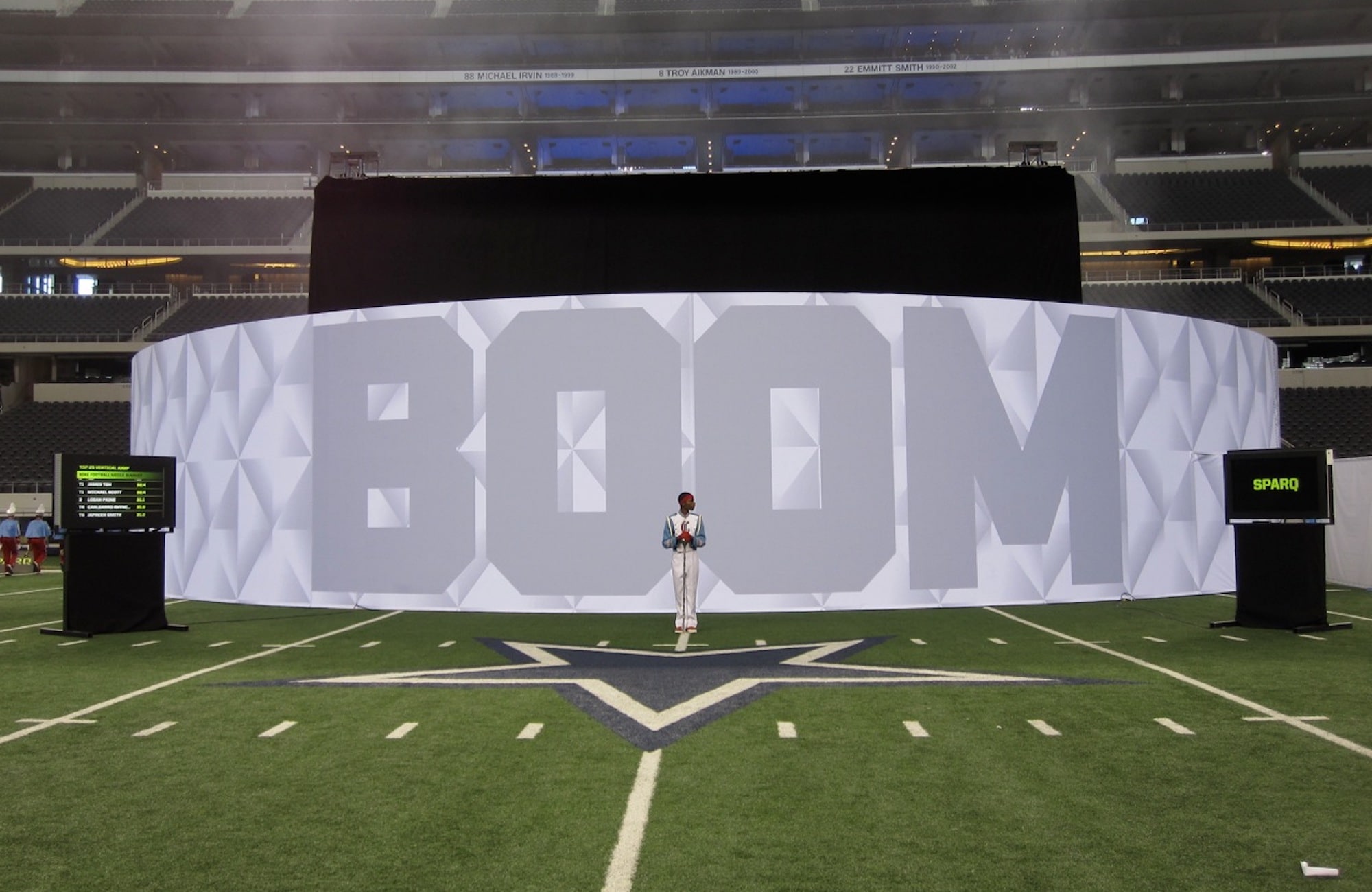 In addition to the live stage show at the 50 yard–line, 100 media members from around the world were given exclusive access to a tour of the stadium, one-on-one athlete interviews, customized shoes, and the new Nike Boom! Mobile app.
