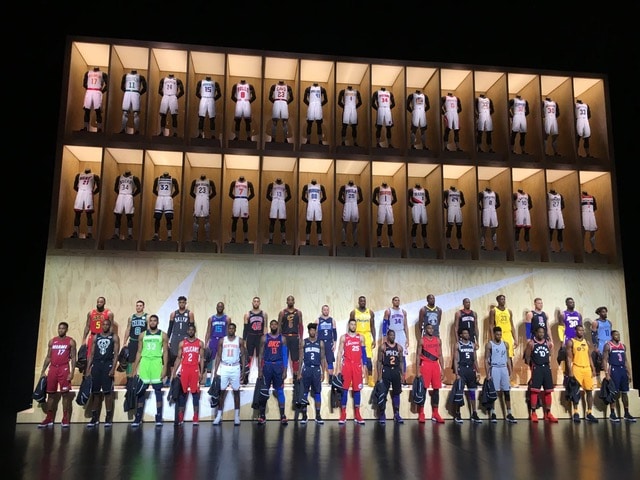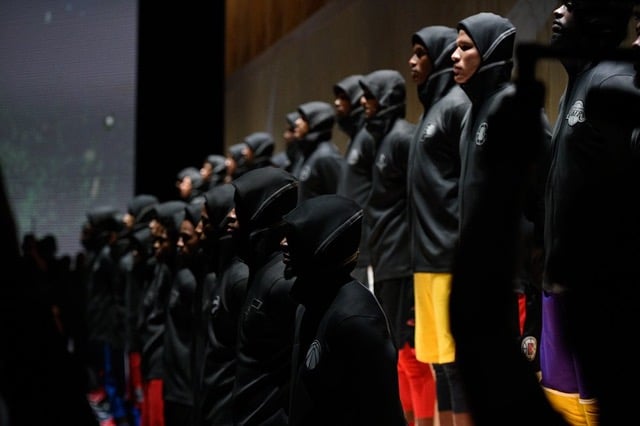 Just ahead of the 2017-2018 season, Nike celebrated its partnership with the NBA through a theatrical unveiling of the new Statement Edition uniforms, fan apparel, and the Nike NBA Connected Jersey. The event featured players from all 30 teams—including headliners Kevin Durant, Paul George, and Blake Griffin—as well as a live performance by Travis Scott. Traveling sky-high LED monoliths transformed the Sony Studios stage into an immersive experience, in which the audience was continuously surprised and granted exclusive access to some of the top athletes in the world.
